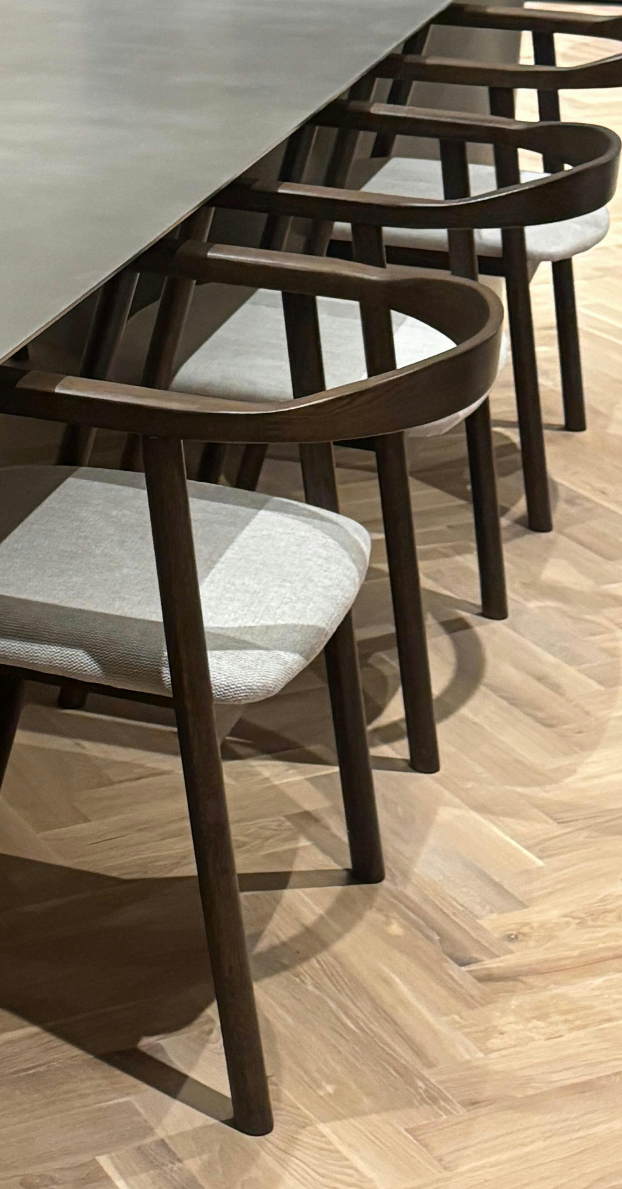 Vous trouverez ci-dessous des échantillons de tissu pour Jocelyn - Chaise de salle à manger en chêne fumé avec assise en tissu beige