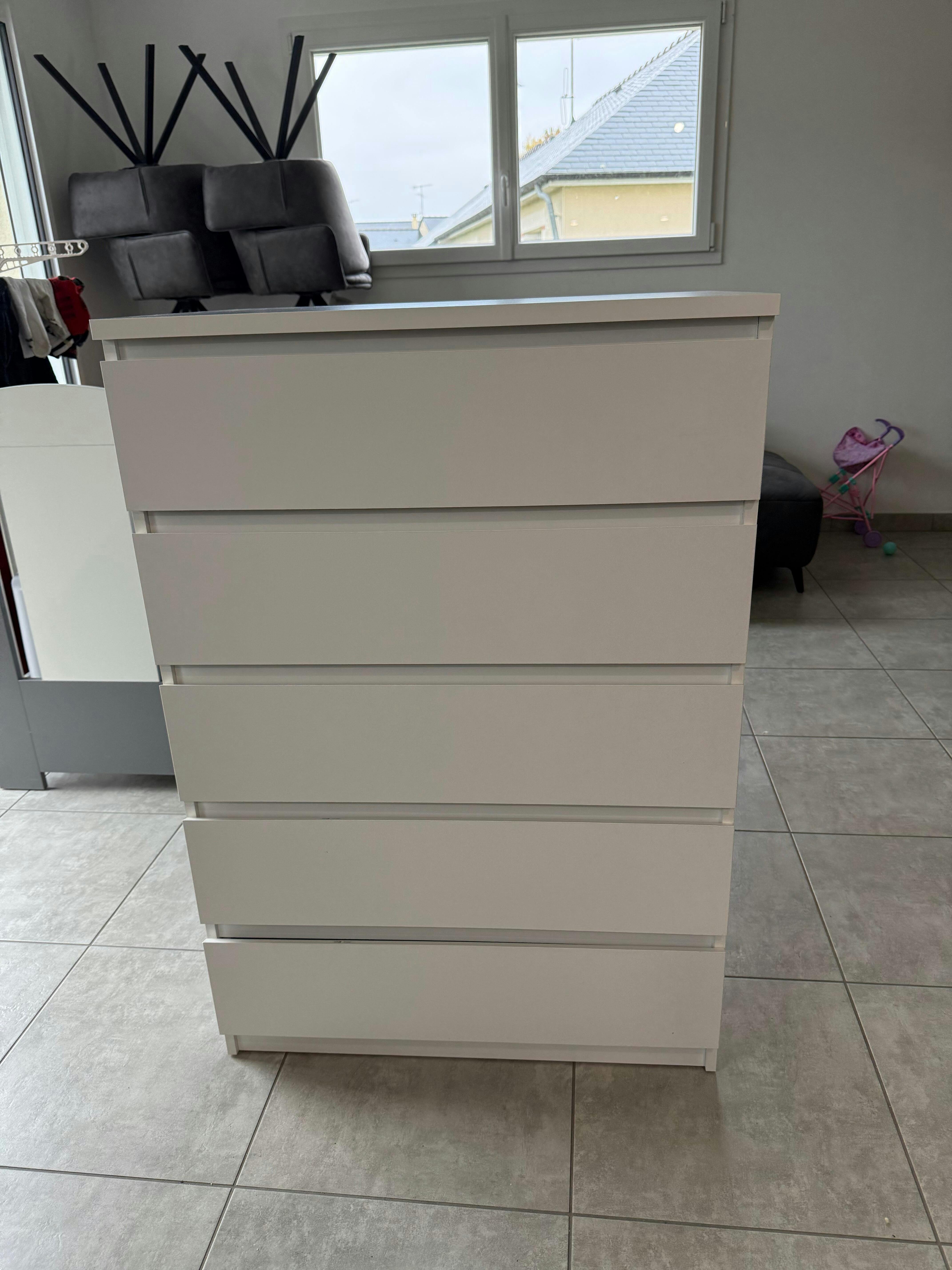 Vous trouverez ci-dessous des échantillons de tissu pour Maise Commode H:114 x L:65 x P:41 cm avec 5 tiroirs en blanc