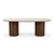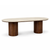 Table de salle à manger ovale Enzo avec plateau en pierre beige et sommier à lattes en chêne fumé 220x100x76 cm