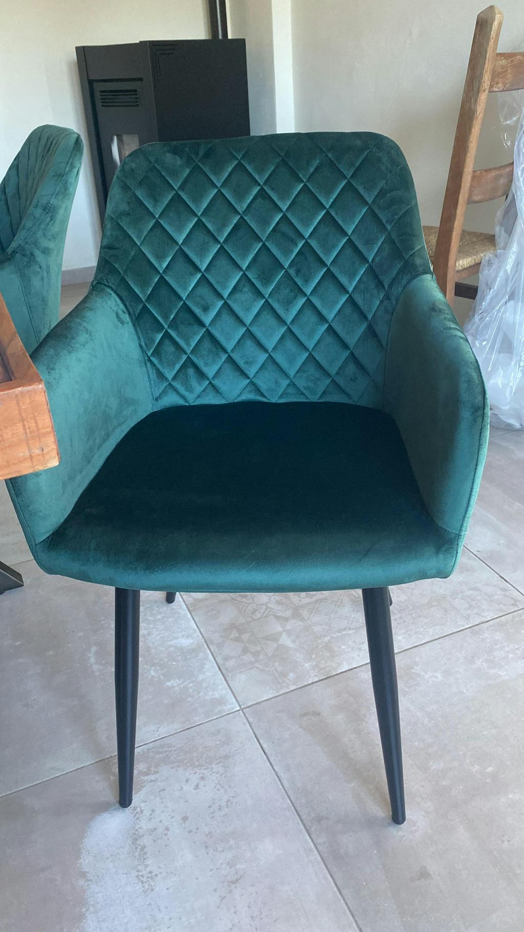 Carlo - Chaise en velours vert foncé avec accoudoirs