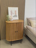 Die Kommode wird in zwei Kartons geliefert, ein schwerer mit der Kommode selbst (flach als Bausatz) und ein kleiner mit den Beinen. Im Kommodenkarton befinden sich auch Beine, rund aus Eiche, die schwarzen Metallbeine sind allerdings deutlich schöner und auch stabiler.